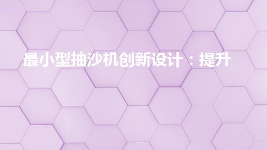 最小型抽沙機創新設計:提升效率的抽沙設備如何改變產業格局?